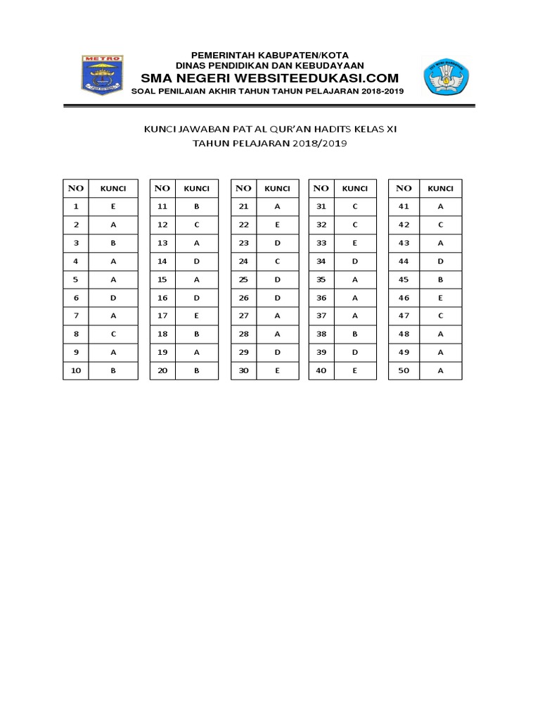 Kunci Jawaban Pat Al Quran Hadits Kelas 11 2019 Websiteedukasi Com