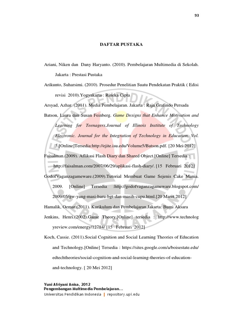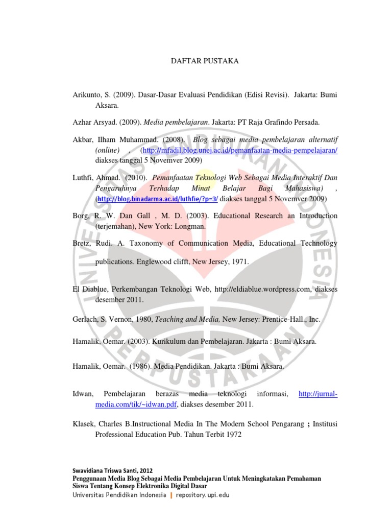 Daftar Pustaka Daftar Pustaka Pdf Media Pembelajaran Jakarta