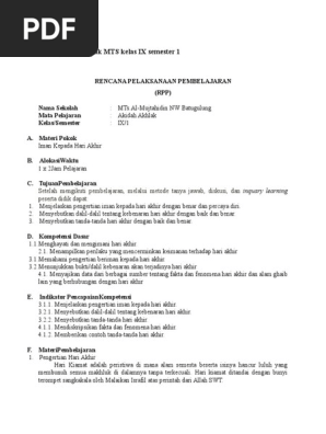 Rpp Aqidah Akhlak Mts Kelas Ix Semester 1 Docx