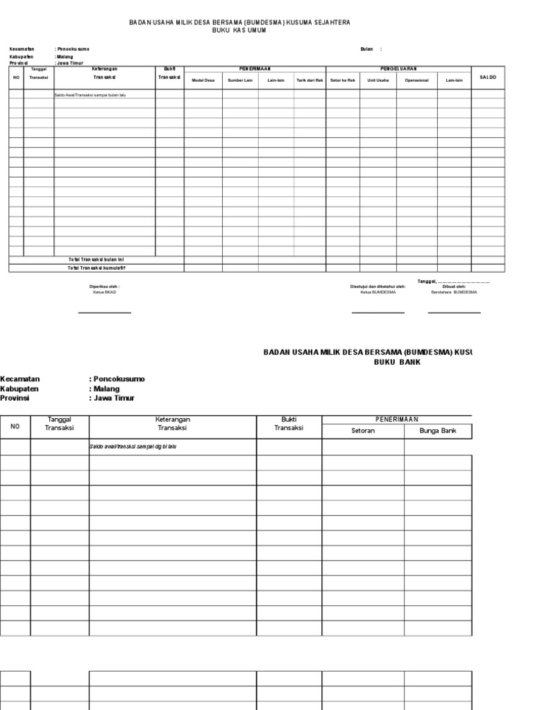 Download Contoh Format Buku Kas Umum Buku Bank Desa Buku Kas