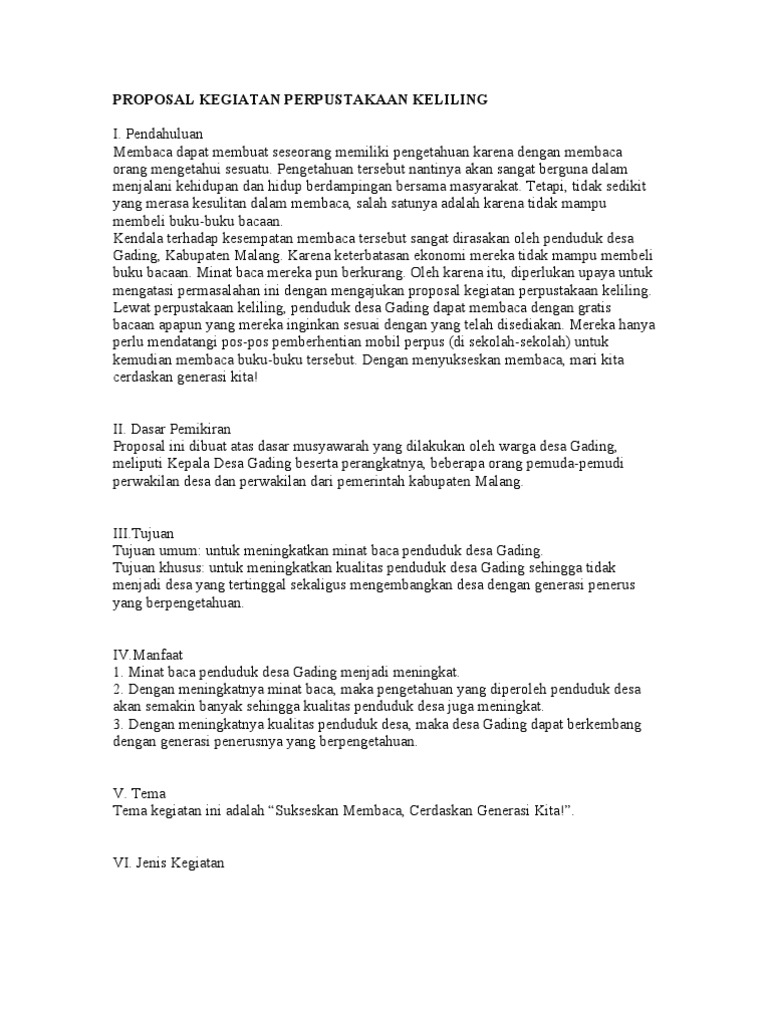 Contoh Proposal Kegiatan Perpustakaan Keliling Via