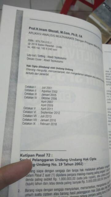 Buku Imam Ghozali Aplikasi Analisis Multivariate Dengan Program