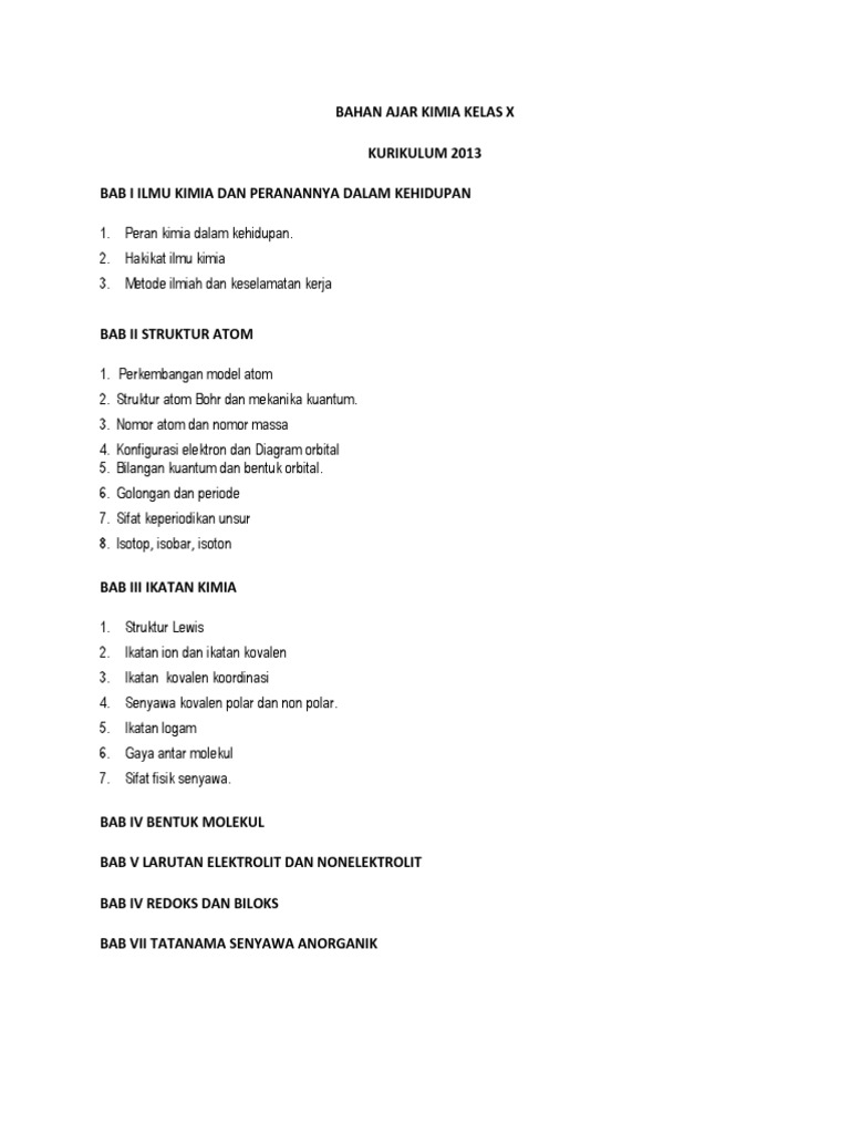 Bahan Ajar Kimia Kelas X 2013 Pdf