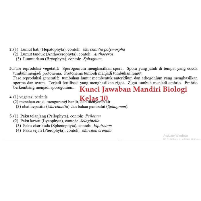 Xabili Indo Xabili Indo Kunci Jawaban Mandiri Biologi Kelas 10