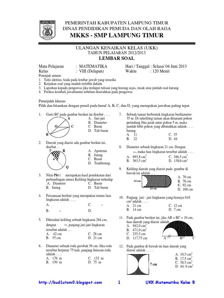 Download Soal Kunci Jawaban Dan Pembahasan Pts Uts Matematika Smp