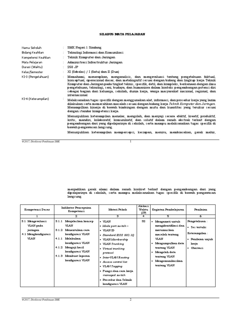 Smk Revisi 2017 Silabus Smk Administrasi Infrastruktur Jaringan