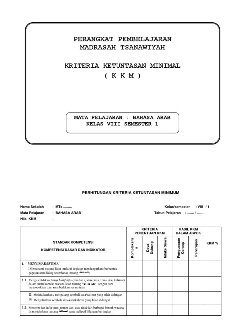 Kkm Bahasa Arab Mts Kelas 7 Kurikulum 2013 Kurikulum Belajar