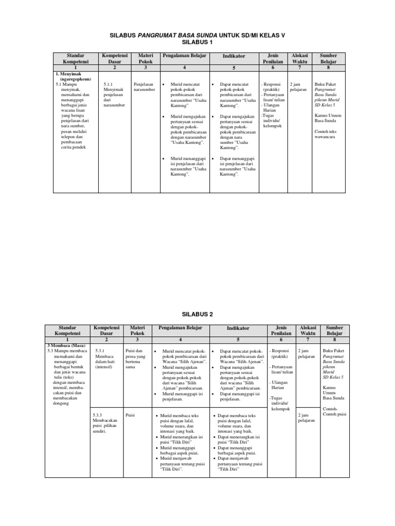Silabus Dan Rpp Bahasa Sunda Sd