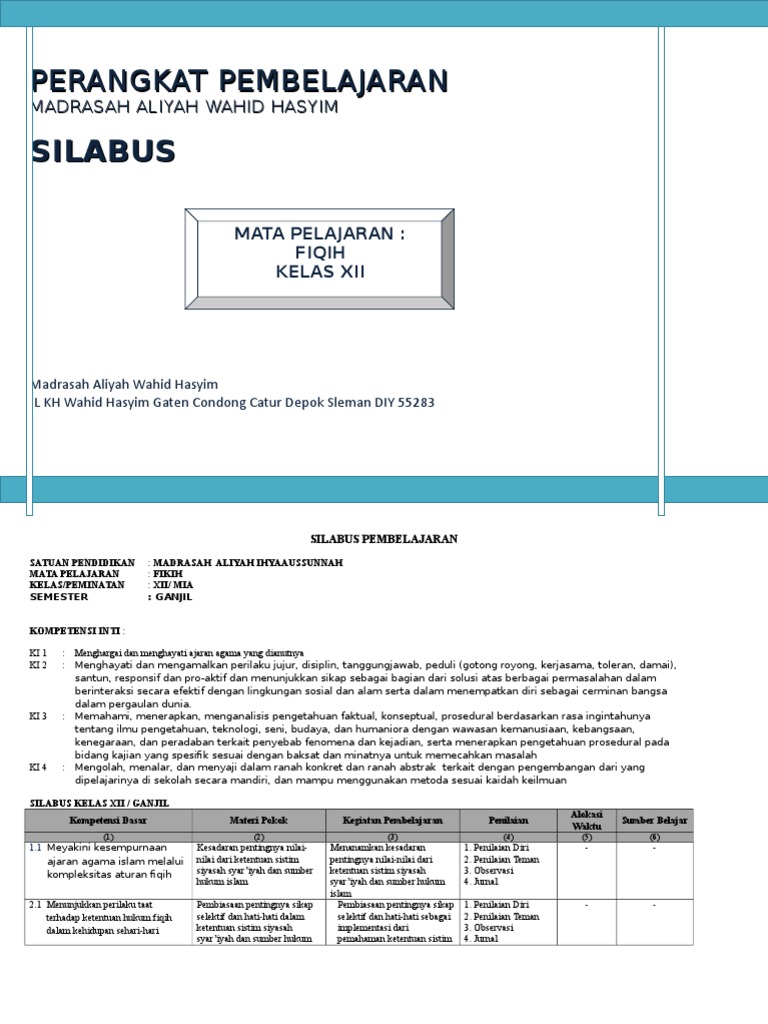 Silabus Fiqih Kelas Xii Kurikulum 2013 Revisi 2016 1 Doc