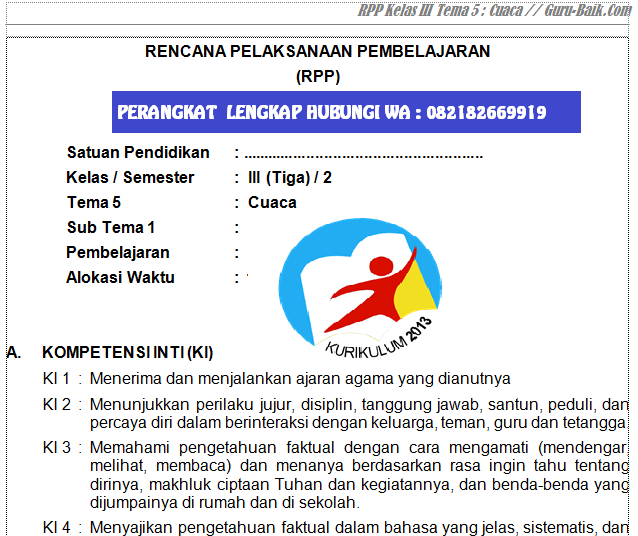 Unduh Rpp Tematik K13 Kelas Iii Semester 2 Tema 5 Cuaca Revisi
