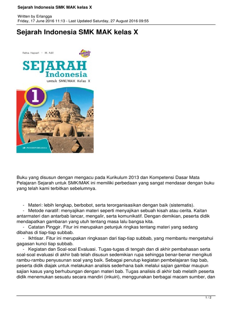 Http Www Erlangga Co Id Katalog Produk Terbaru 8928 Sejarah Indonesia Untuk Smkmak Kelas X Pdf