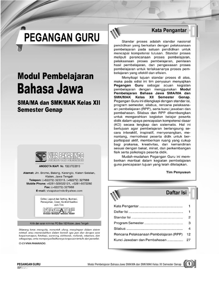 Materi Bahasa Jawa Kelas Xii Semester 1 Kurikulum 2013 Guru Ilmu