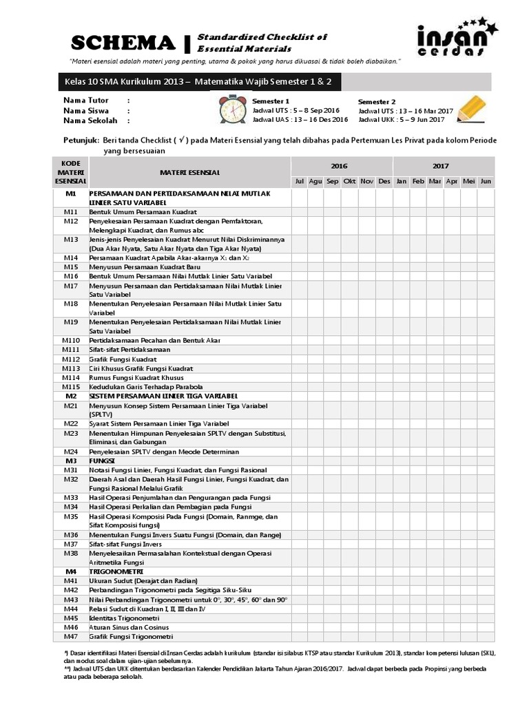 Schema Kelas 10 Kurikulum 2013 Matematika Wajib Semester 1 2