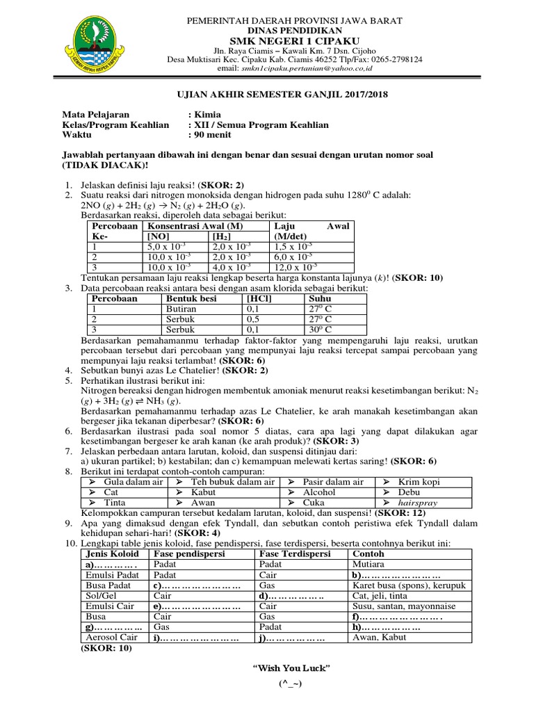 Lengkap 40 Contoh Soal Uas Kimia Kelas 12 Sma Ma Semester