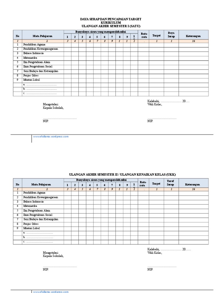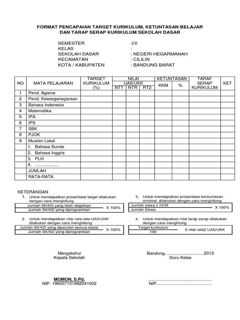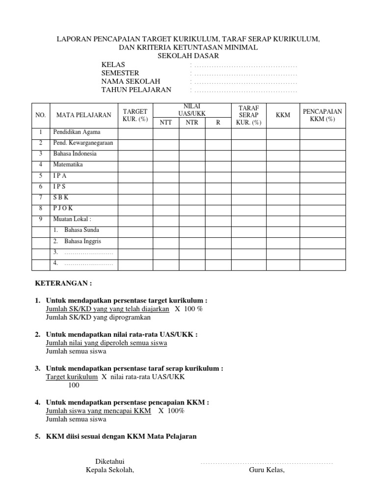 Contoh Format Pencapaian Target Kurikulum Sd Smp Sma Terbaru