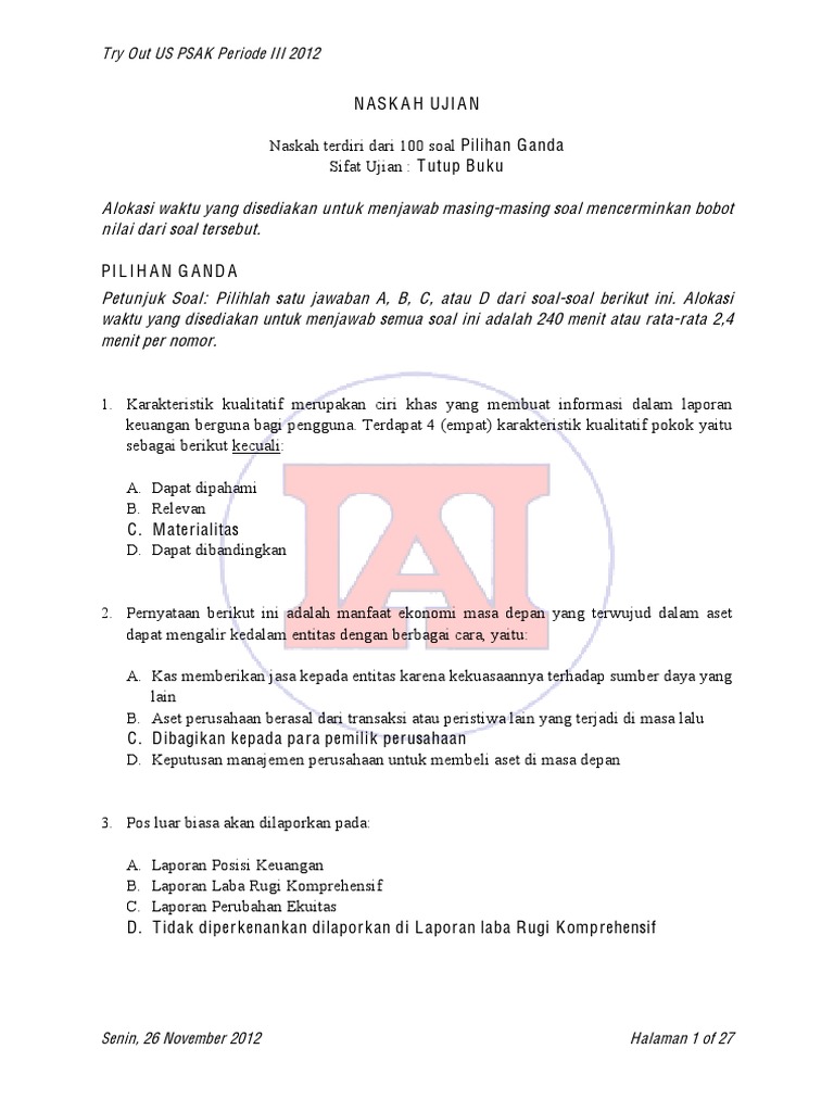 Soal Pilihan Ganda Laporan Keuangan Dan Jawabannya Pilihan Ganda