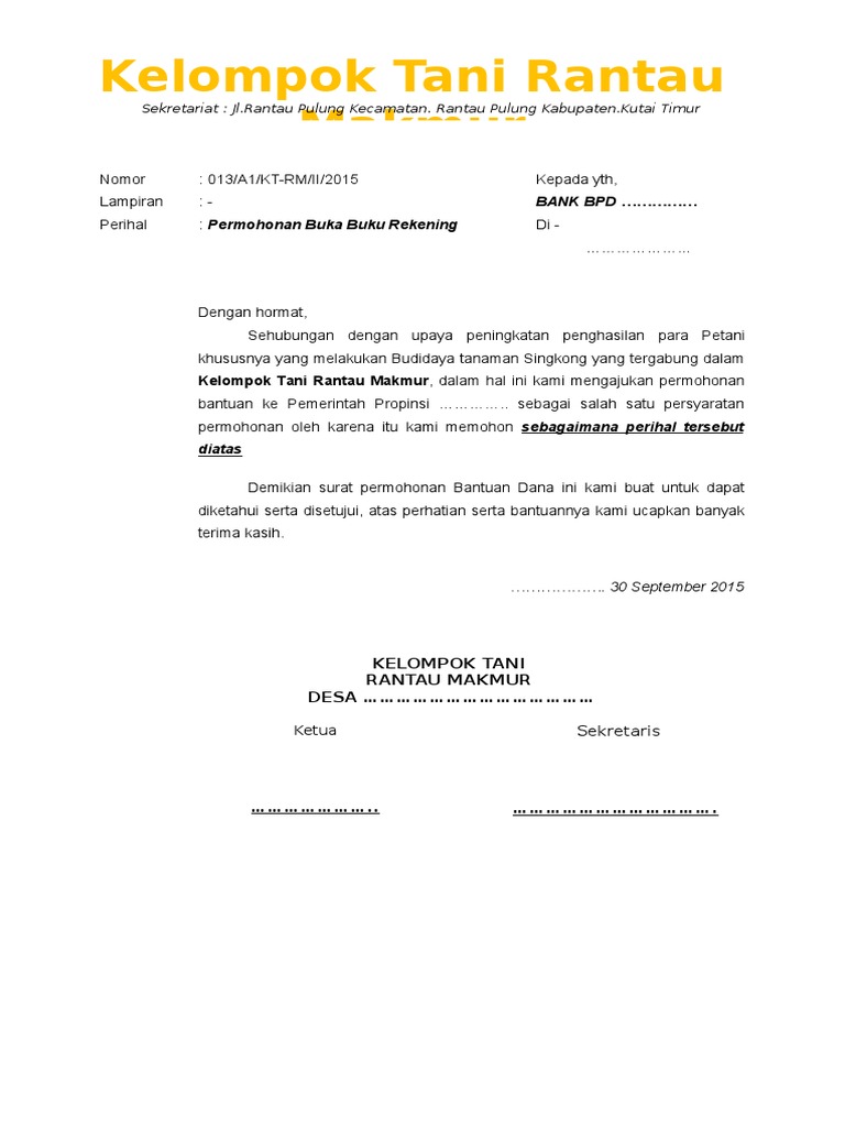 Contoh Surat Permohonan Buka Rekening