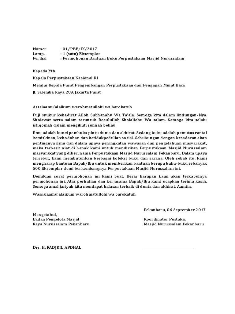 Surat Permohonan Bantuan Buku Perpustakaan Nasional Ri