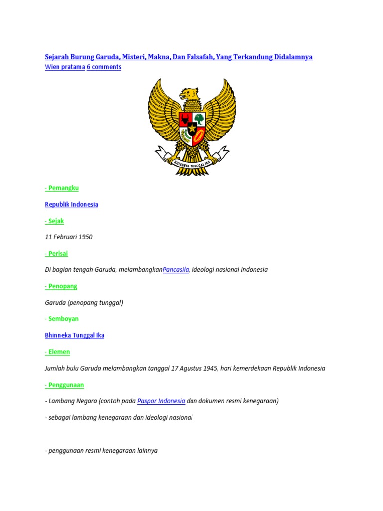 Sejarah Asal Usul Lambang Negara Indonesia Garuda Pancasila