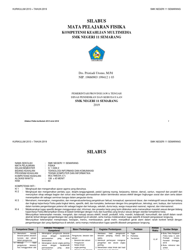 Silabus Fisika Teknologi Dan Rekayasa Smk Kelas Xi Pristiadi Utomo 0