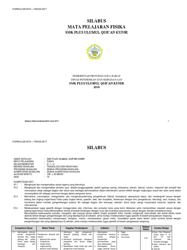 Silabus Fisika Kurikulum 2013 Th 2017 Docx Kurikulum 2013 Tahun
