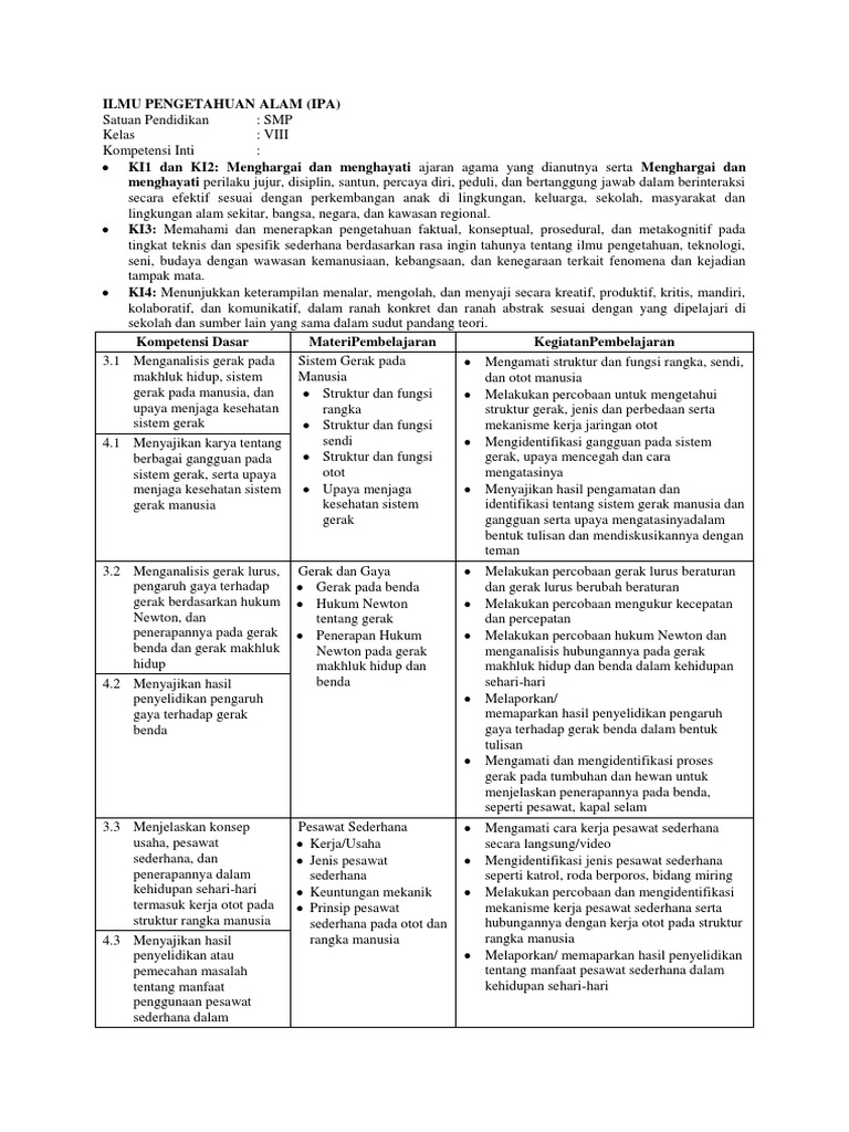 Silabus Ipa Smp Kurikulum 2013 Revisi 2017 Portal Edukasi