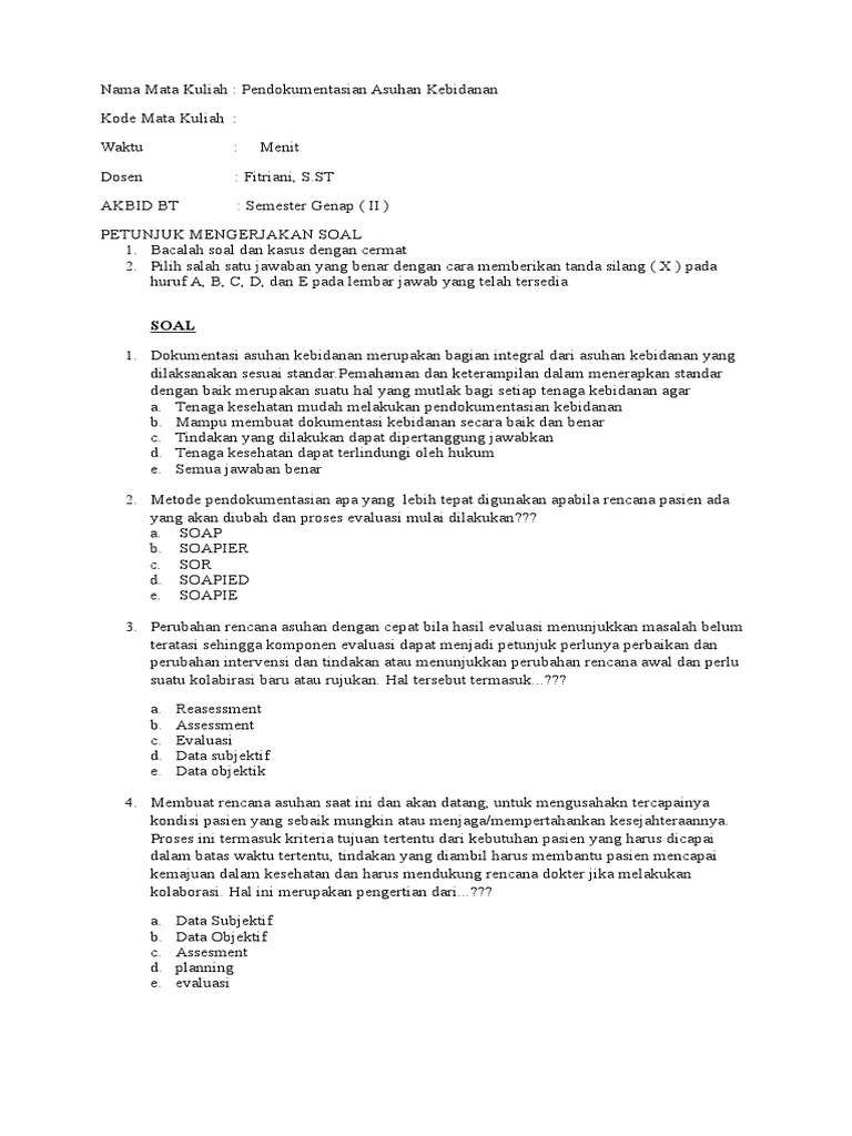Doc Contoh Soal Asuhan Kebidanan Iii Mika Bkl Academia Edu