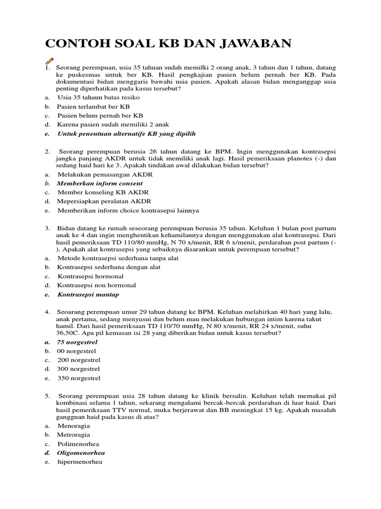 Doc Kumpulan Soal Kasus Kespro Dan Kb Windi Sri Asih Academia Edu