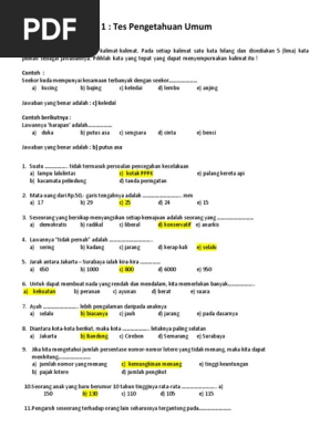 Contoh Soal Tes Potensi Akademik Dinas Perhubungan Pdf Guru Ilmu Sosial