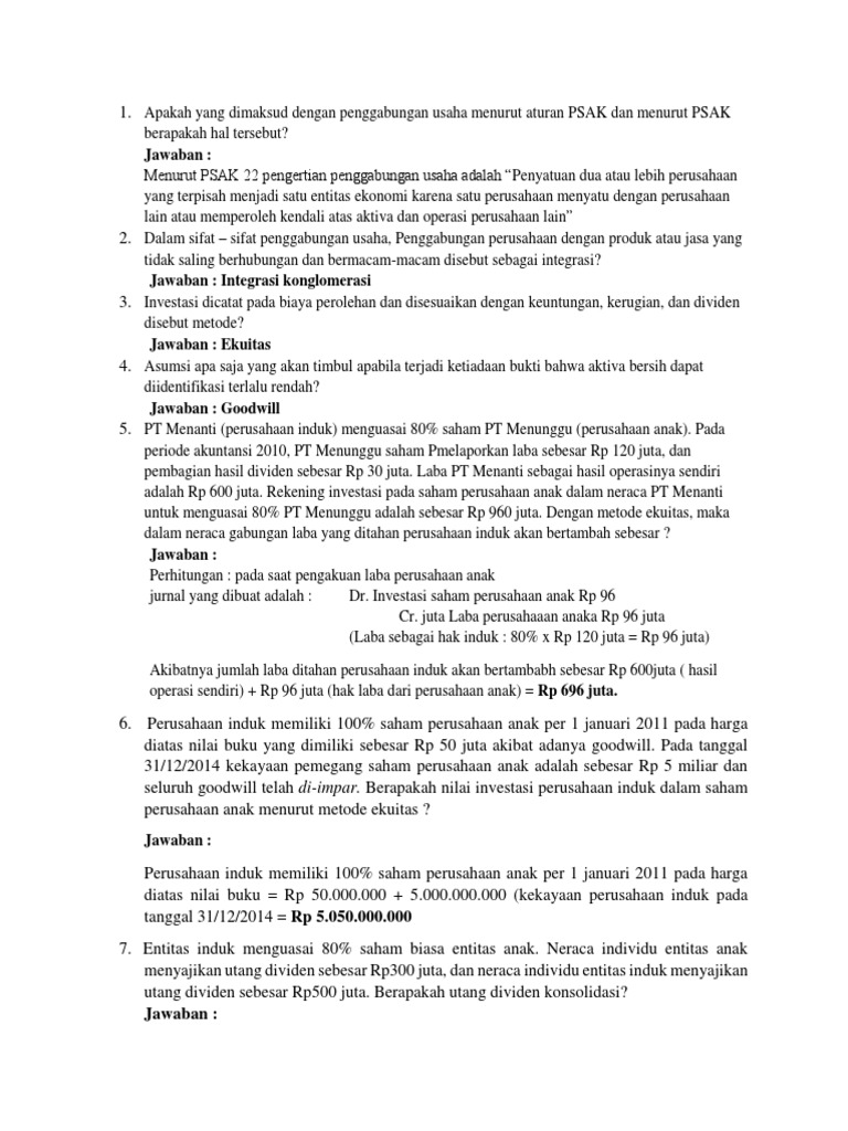 Soal Pertandingan Wacex Eza 2018 Konsolidasi Bisnis Dividen