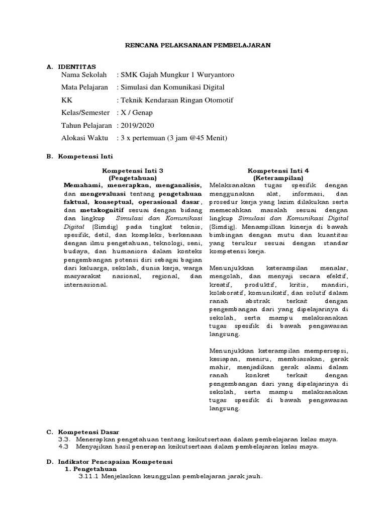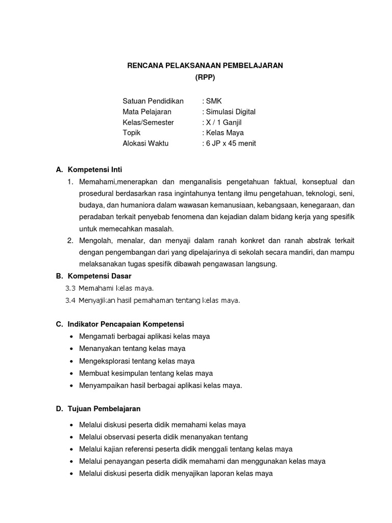 Rpp Simdig X Gasal K 13 Kelas Maya