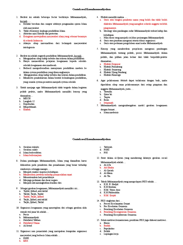 Soal Pilihan Ganda Kemuhammadiyahan Kelas Xi Guru Ilmu Sosial