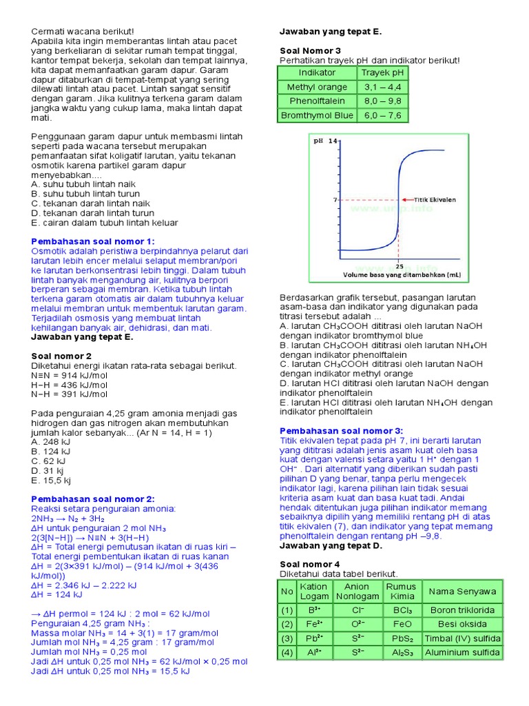 2014 Skl Kimia Dan Contoh Soal Serta Pembahasannya