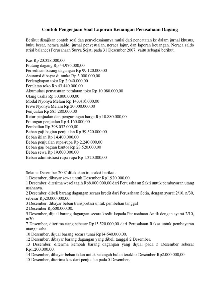 Contoh Soal Laporan Keuangan Perusahaan Dagang Dan Penyelesaiannya Pdf Kumpulan Contoh Laporan