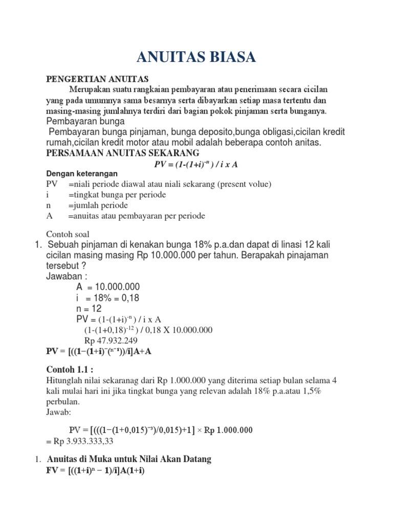 Contoh Soal Anuitas Dan Jawabannya Kunci Ujian