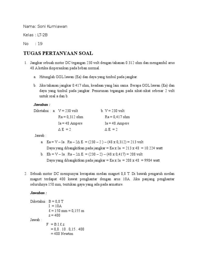 Tugas Soal Dan Jawaban Motor Listrik