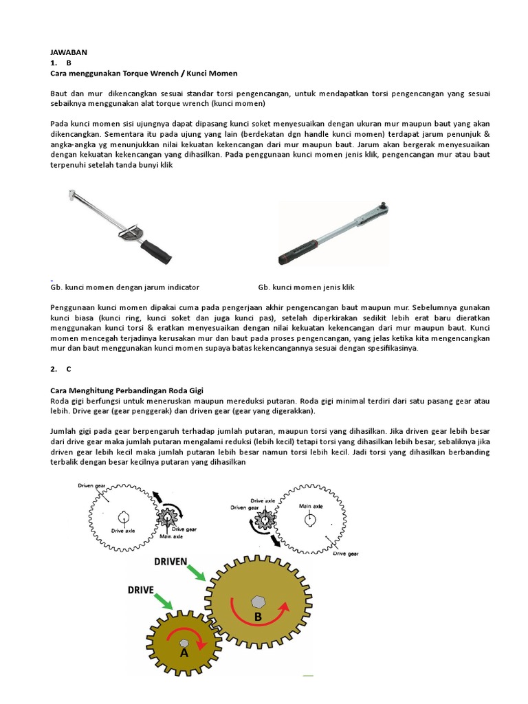 Jawaban 1 B Cara Menggunakan Torque Wrench Kunci Momen