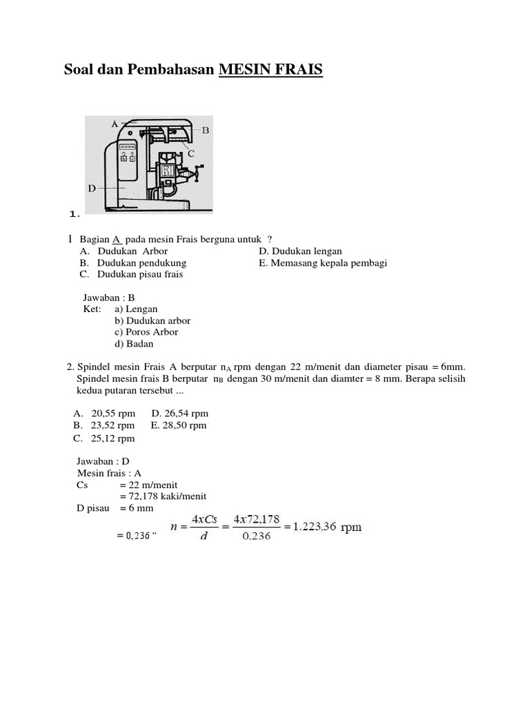 Soal Dan Pembahasan Mesin Frais