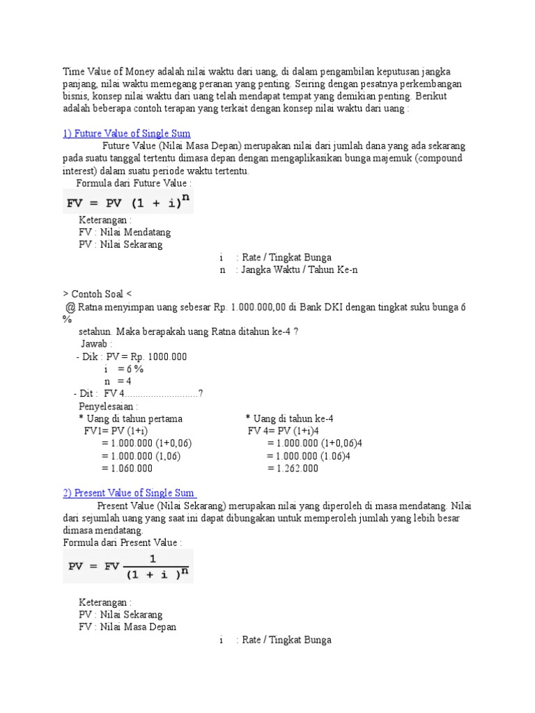 Contoh Soal Dan Jawaban Tentang Time Value Of Money