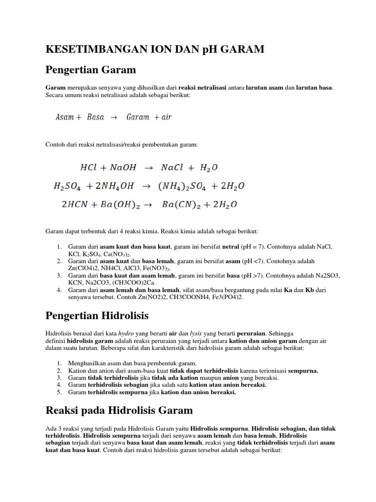 Pengertian Hidrolisis Garam Macam Dan Rumus Serta Contohnya