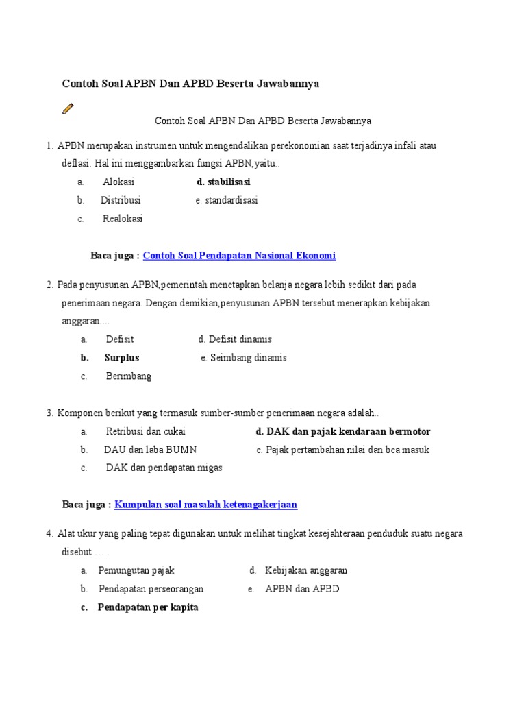 Contoh Soal Apbn Dan Apbd Beserta Jawabannya