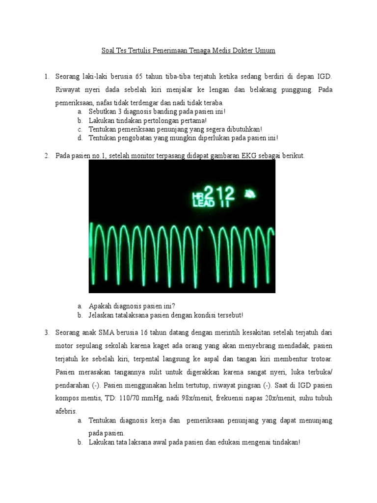 Soal Tes Tertulis Penerimaan Tenaga Medis Dokter Umum