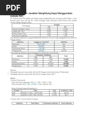 Contoh Soal Dan Jawaban Menghitung Biaya Menggunakan Metode Abc