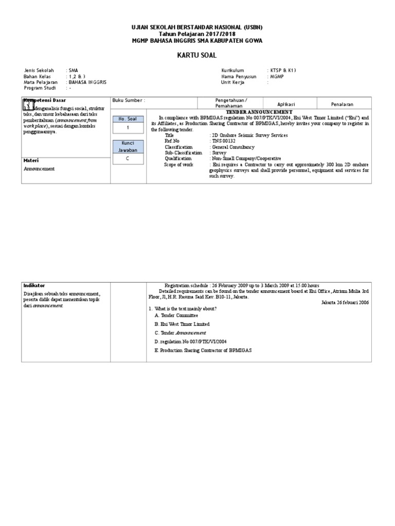 Kartu Soal Usbn Bhs Inggris Mgmp Gowa Mobile Phones Indonesia