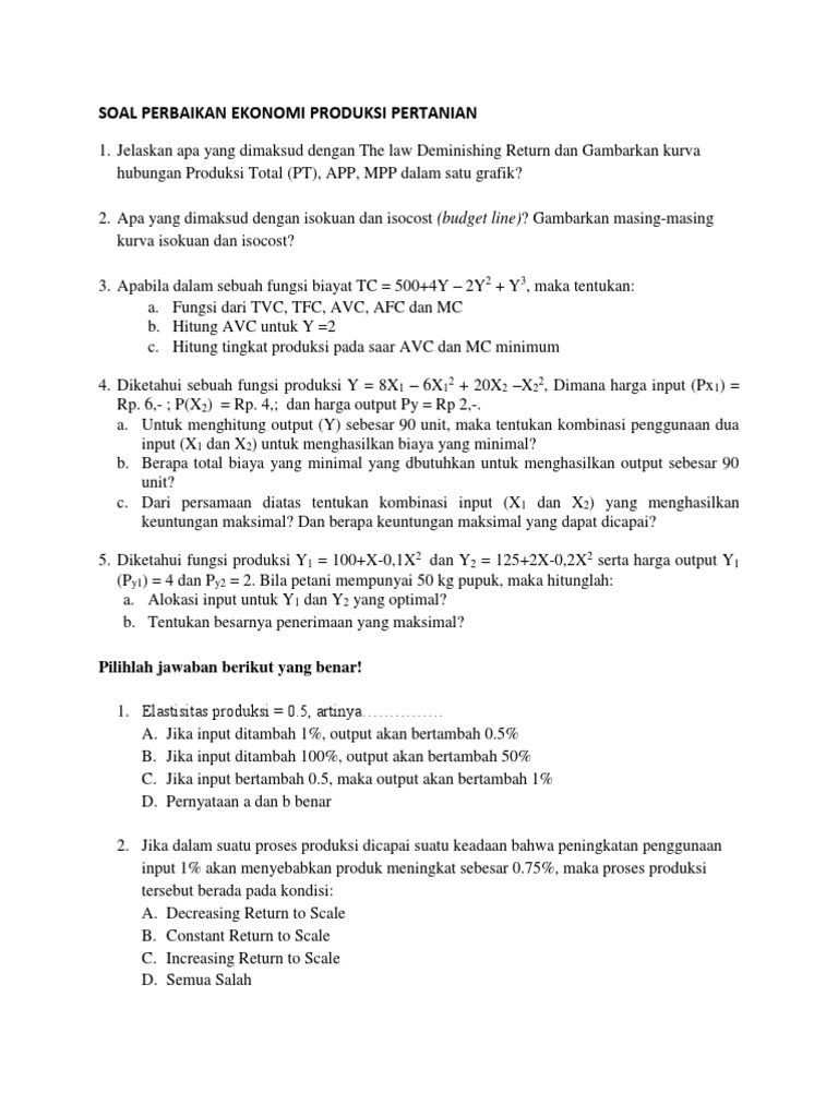 Doc Soal Latihan Teori Produksi Dinaf Bay Academia Edu