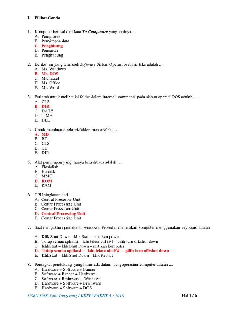 Contoh soal dan jawaban kkpi usbn 2018. Alat yang digunakan untuk mengendalikan pointer atau biasa disebut pointing devices adalah. Berikut contoh soal try out dan prediksi usbn sd mi tahun pelajaran. Tahun ini merupakan tahun kedua pelaksanaan usbn untuk jenjang smk mak.