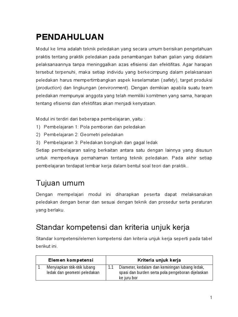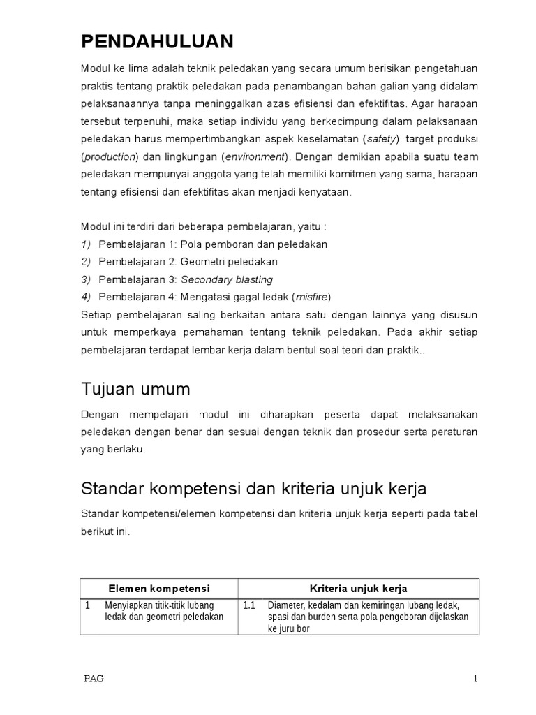 Pdf Modul Juru Ledak Kelas 2 5 Teknik Peledakan Apisako Hadi Academia Edu