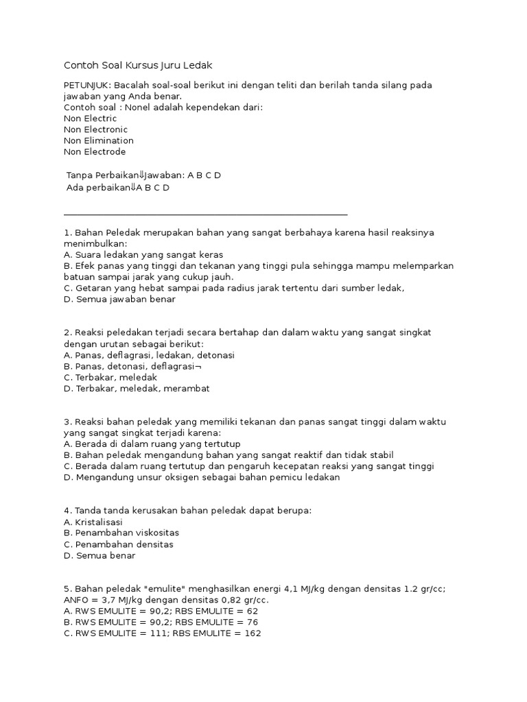 Contoh Soal Dan Jawaban Teknik Peledakan Geometri