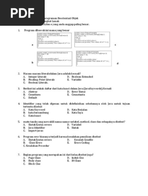 Contoh soal dan jawaban pemrograman java 1. Dikarenakan penulis baru saja melewati masa ujian akhir semester mata kuliah pemrograman berorientasi objek pbo. Contoh soal uts pemrograman berorientasi objek berikut ini adalah kisi kisi soal pretest ppg 2018 yang merupakan kumpulan file dari berbagi sumber kisi kisi ppg tentang contoh soal uts pemrograman berorientasi objek yang bisa bapak ibu gunakan dan diunduh secara gratis dengan menekan tombol download biru dibawah ini.