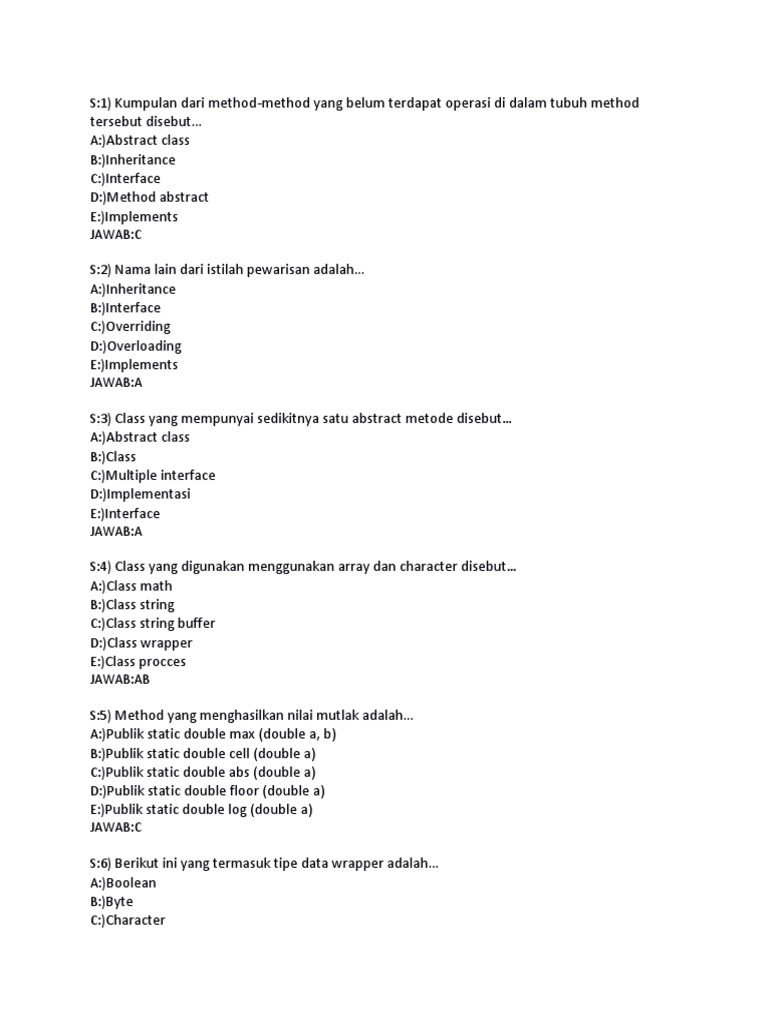 Soal pilihan ganda dan essay pbo i pemograman berorientasi objek kelas 11 semester 2 a. Kumpulan soal pemrograman berorientasi objek berikut ini adalah kisi kisi soal pretest ppg 2018 yang merupakan kumpulan file dari berbagi sumber kisi kisippg tentang kumpulan soal pemrograman berorientasi objek yang bisa bapakibu gunakan dan diunduh secara gratis dengan menekan tombol download biru dibawah ini. Dikarenakan penulis baru saja melewati masa ujian tengah semester mata kuliah pemrograman berorientasi objek maka akan diposting beberapa soal yang muncul untuk program jurusan sistem informasi semester dua di universitas bunda mulia.